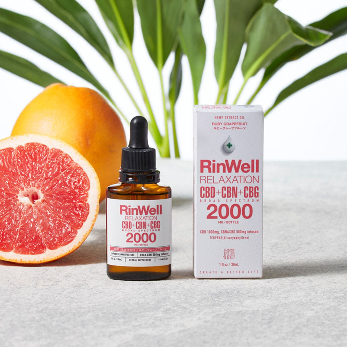 商品名:RinWell CBD+CBN+CBGオイル 2000mg ルビーグレープフルーツ 30ml