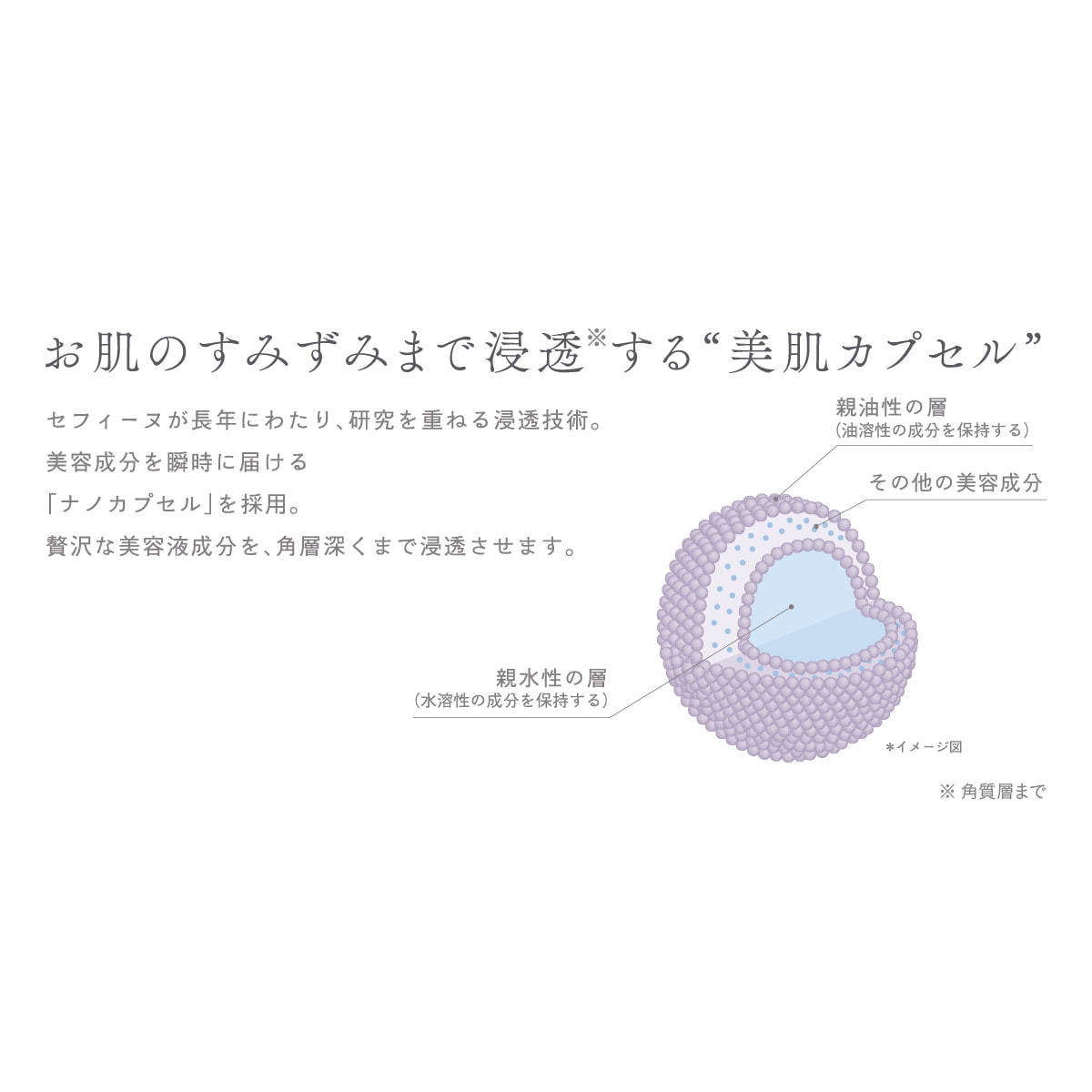 年齢肌の悩みにアプローチする成分を効率よく届ける機能性と、どなたにも安心してお使いいただける安全性にこだわり抜いたセフィーヌ史上最高峰*¹のエイジングケアシリーズ*²。