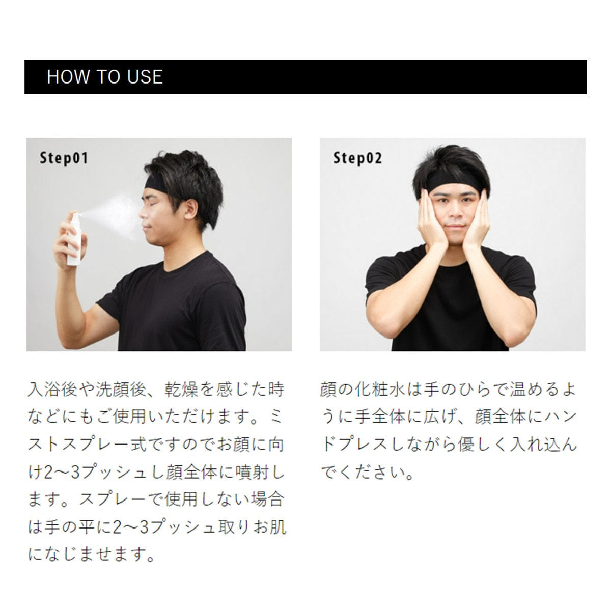 ①入浴後や洗顔後、乾燥を感じた時などにもご使用いただけます。