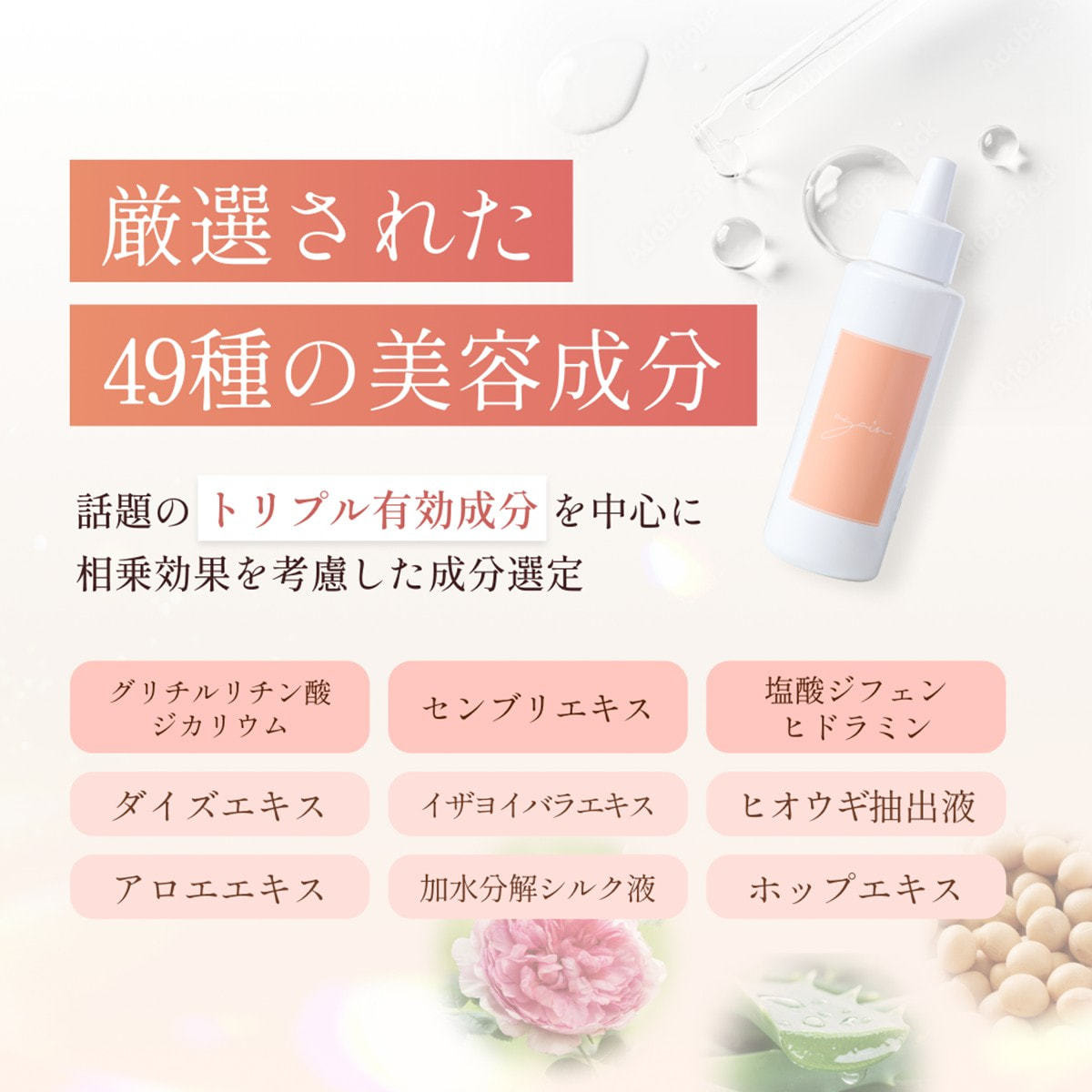 アロエエキス、加水分解シルクエキス、カンゾウ葉エキス、ポップエキスで