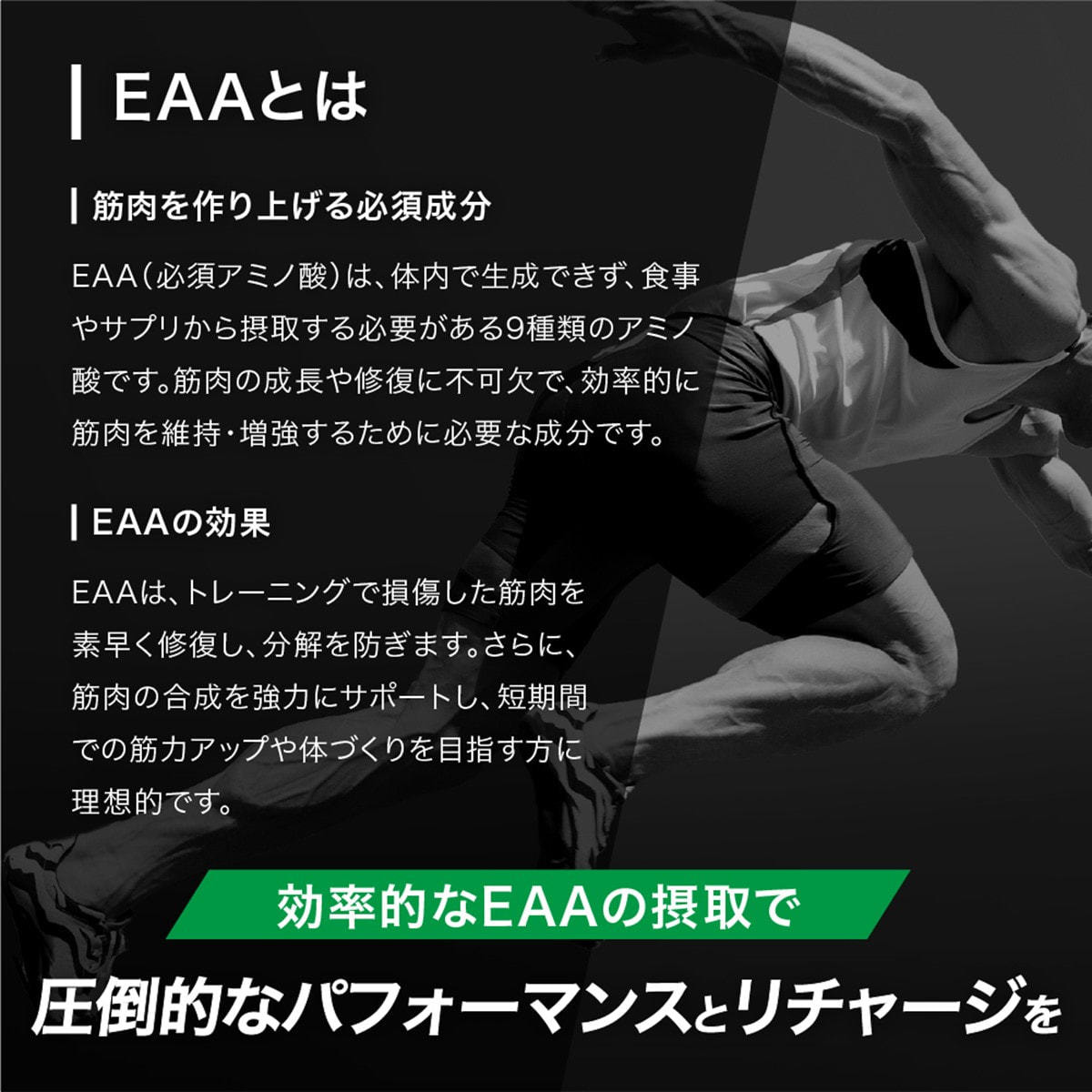 EAA(Essential Amino Acids)は、人間の体内で合成できない必須アミノ酸の総称です。