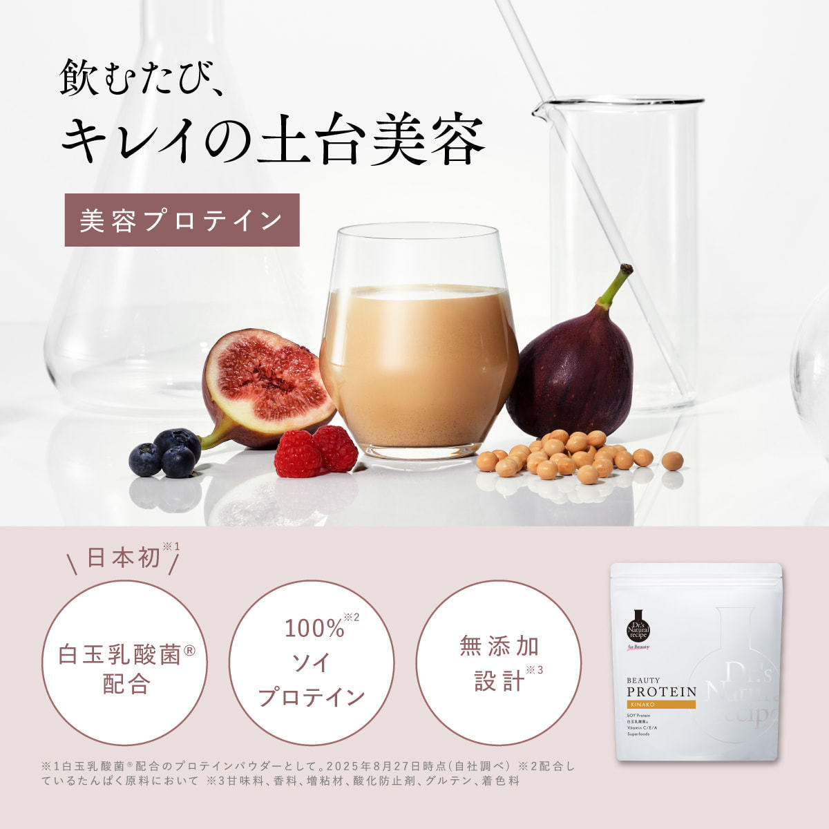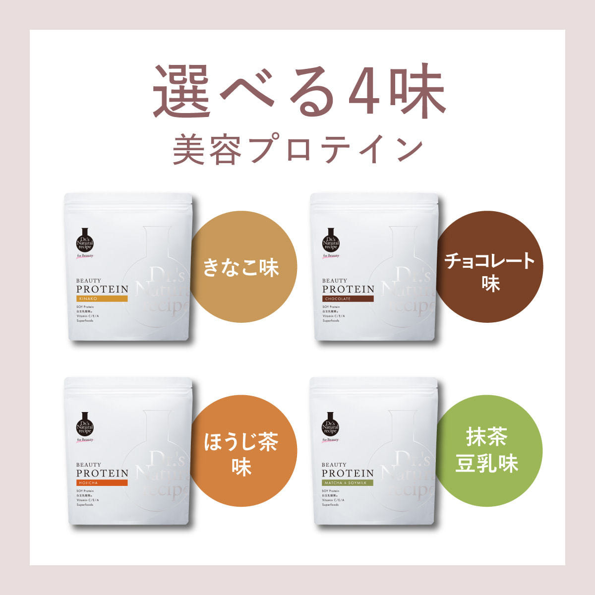 Dr.'s Natural recipeの美容プロテインシリーズは、たんぱく質を補給しながら、腸活*3と美容ケアができる、「美しさの土台をつくる」美容プロテインです。