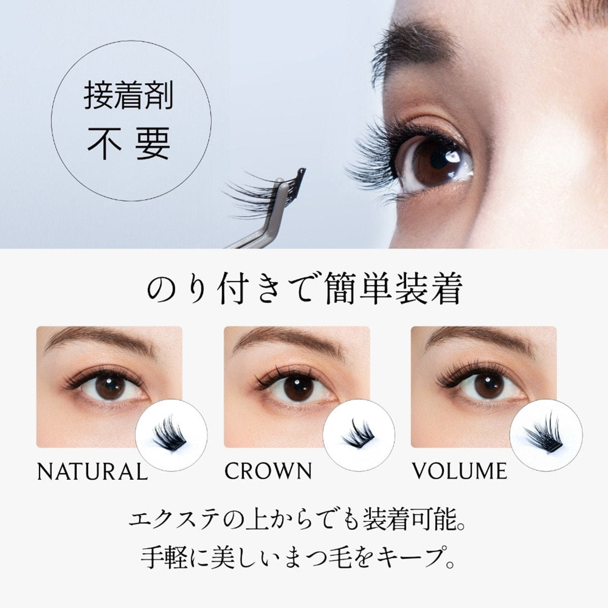 ●エクステンションは必ず地まつ毛に装着し、直接肌につけないようにしてください。