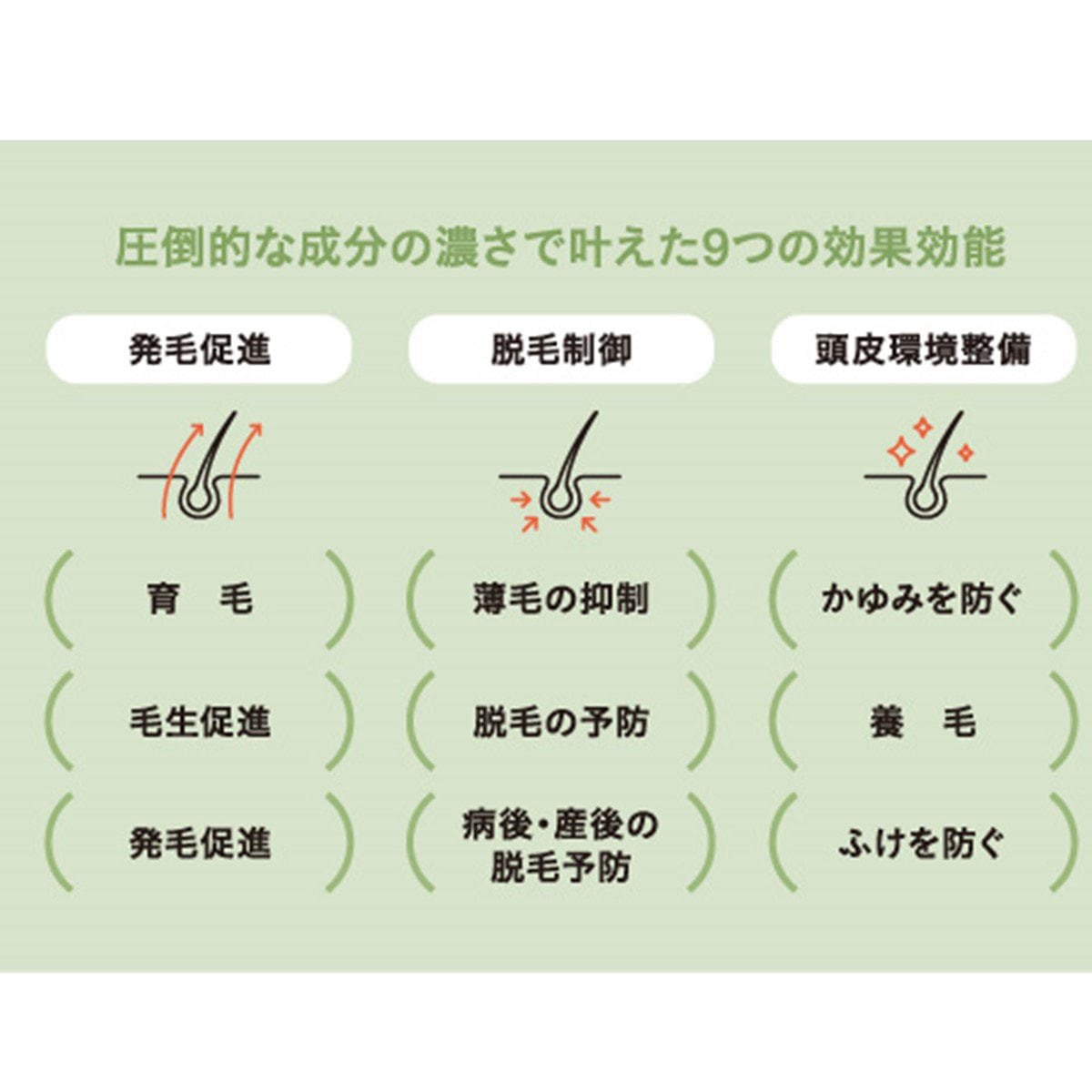 育毛剤によくあるスッとした爽快感を生む成分や香料などを一切カットし、有効成分の濃度をギリギリまで高めています。