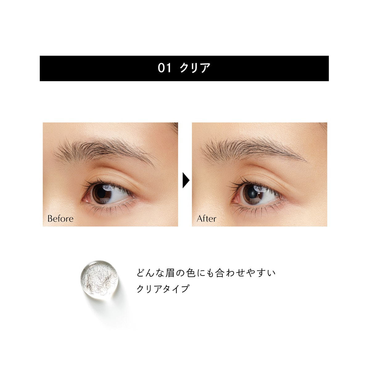 ● どんな眉毛の色にも合わせやすいクリアタイプで、毛流れを自在にコントロール