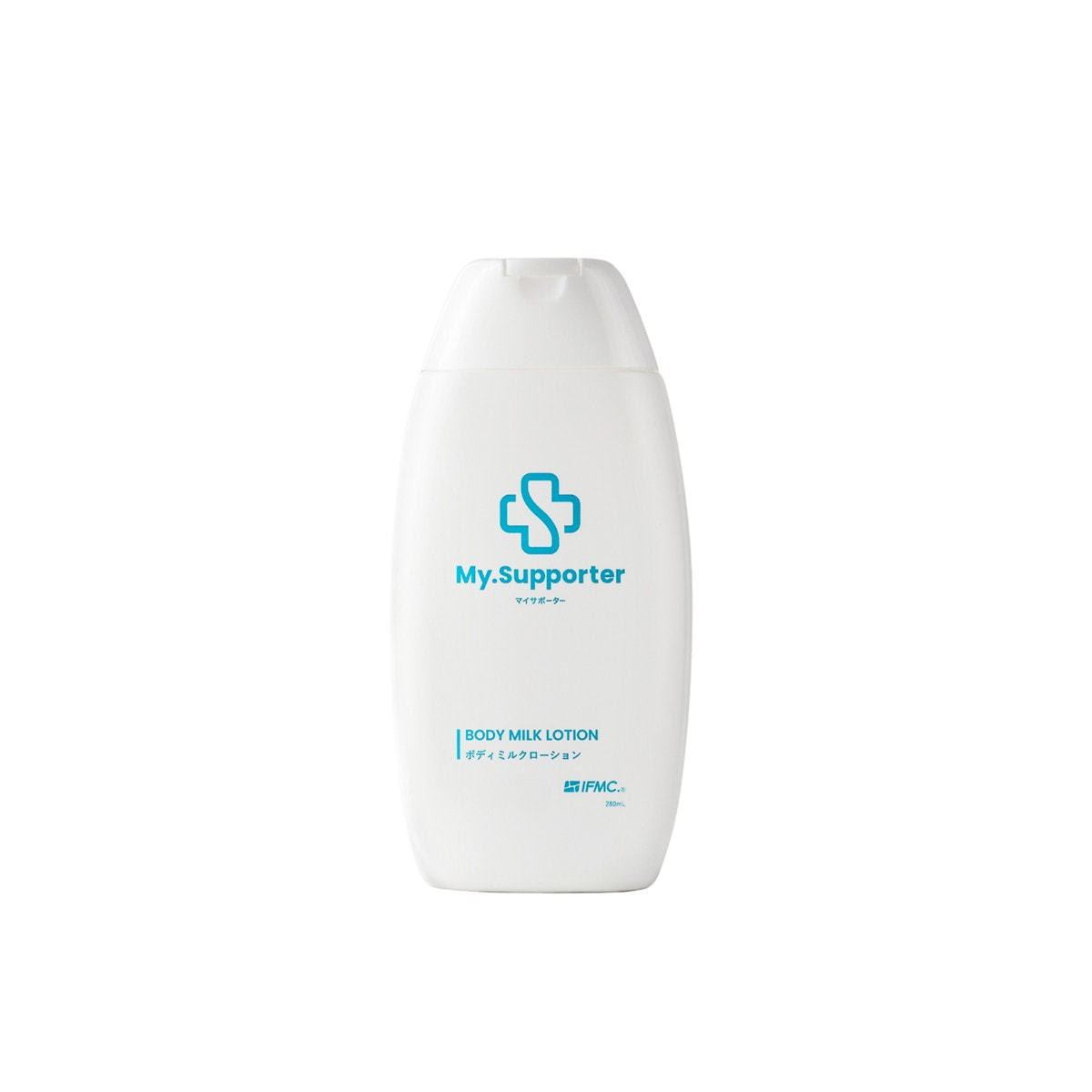 このボディミルクローションには温泉水が配合されており、IFMC.(イフミック:集積機能性ミネラル結晶体)を含んでいるため、肌を柔らげ、乾燥した肌にしっかりと潤いを与えます。マッサージをしながらお使いいただくことで、健やかな肌状態へと導きます。